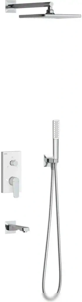 | Комплектация | верхний душ, ручной душ (лейка), держатель лейки, шланг, смеситель, излив для ванны |