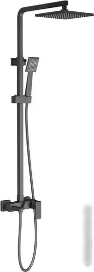 Душевая система Timo Selene SX-1030/03 в черном цвете отлично подойдет для вашей ванной комнаты. Она выполнена из прочного пластика и алюминия, что обеспечивает долговечность и надежность. В системе есть верхний душ с прямоугольной формой и диаметром 215 мм, а также ручной душ с регулировкой по высоте, что делает использование очень удобным. Она предназначена для настенного монтажа и оснащена механическим смесителем и вентилем. В комплект входит излив для ванны и шланг длиной 1500 мм, что удобно для различных гигиенических процедур.