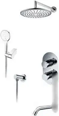 Душевая система Wasserkraft A174819 Thermo рассчитана на удобное использование. Она выполнена из пластика и латуни, что обеспечивает прочность и долговечность. Устанавливается скрытым способом и имеет термостатический смеситель для комфортной температуры воды. В комплект входит верхний душ с одним режимом и ручной душ с тремя режимами, которые легко переключаются. Верхний душ имеет диаметр 250 мм и расположено на шарнире, что помогает регулировать его положение. Есть также излив для ванны и фиксированная форма душа для удобного мыться.