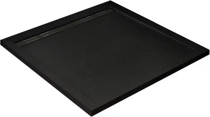 квадратный, 100x100 см, искусственный мрамор, низкий, 3 см, противоскользящее покрытие дна, цвет: черный