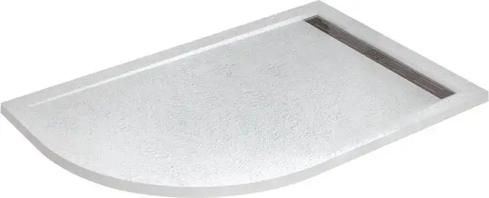 закруглённый, 100x80 см, искусственный мрамор, низкий, 3 см, противоскользящее покрытие дна, цвет: белый