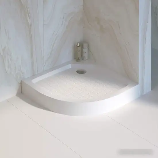 закруглённый, 90x90 см, стеклокомпозит, низкий, 140 см, противоскользящее покрытие дна, цвет: белый
