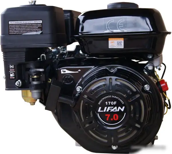 Бензиновый двигатель Lifan 170FM D19 мощностью 7 л.с. подходит для различных сельскохозяйственных и строительных работ. Он работает на четырёхтактном внутреннем сгорании и имеет рабочий объём 212 см³, что обеспечивает хорошую мощность и надёжность. Двигатель оснащён воздушным охлаждением и ручным запуском для удобства использования. Его вес составляет 15.1 кг, он легко устанавливается и транспортируется. Такой двигатель оснащён одним цилиндром и имеет рабочий объём топлива 3.6 литра. Его можно использовать в различных агрегатах благодаря выходному валу диаметром 19 мм.