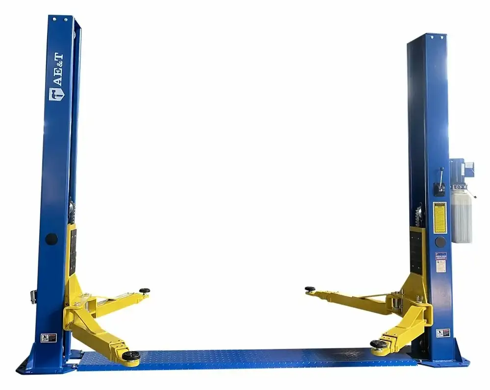 Двухстоечный подъёмник Т5.5 AE&T — это надежное оборудование для подъема тяжелых машин до 5500 кг и высоты до 1825 мм. Он имеет симметричную конструкцию и трехсекционные лапы, что обеспечивает устойчивость и безопасность во время работы. Модель быстро поднимает транспортное средство всего за 50 секунд и потребляет минимум энергии — всего 2,2 кВт. В подъемнике используются гидравлические компоненты UNITED HYDRAULICS®, что гарантирует его долговечность и стабильную работу. Для безопасности предусмотрены механические блокираторы и независимые замки на каждой каретке, что предотвращает падение и соскальзывание. Также есть регулируемые винтовые опоры для работы с разным клиренсом и высокая малая высота лап для машин с низкой посадкой.