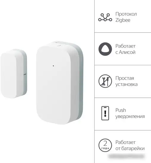 датчик открытия дверей/окон, соединение ZigBee, управление через Яндекс Алиса, размещение внутри помещения