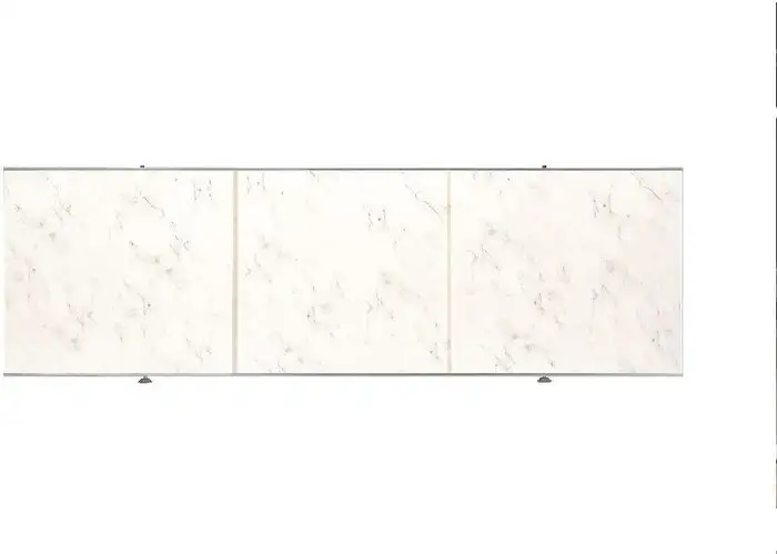 Фронтальный экран под ванну Comfort Alumin Хлопковый мрамор — это удобное решение для защиты пространства под ванной. Он выпускается в трёх размерах: 1,2 м, 1,5 м и 1,7 м, что позволяет выбрать подходящий вариант. Каркас сделан из алюминиевого сплава, он не подвержен коррозии и очень прочный. Экран легко устанавливается под любую ванну благодаря регулируемым упорам и металлическим ножкам с большой площадью опоры. Дверки изготовлены из ПВХ с фотопечатью, они плотно закрываются и могут устанавливаться с любой стороны. Также есть возможность делать технологические вырезы для коммуникаций. Установка очень проста и занимает немного времени.