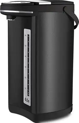 Термопот Blackton Bt TP600 черный отлично подходит для хранения и быстрого разогрева воды благодаря мощностии 900 Вт и объему 6,5 литров. Его металлический корпус и нержавеющая сталь внутри обеспечивают долгое сохранение температуры и надежность. Устройство оснащено электроприводным насосом и клапаном для удобного и безопасного разлива воды. Оно поддерживает режим повторного кипячения, что позволяет использовать воду повторно без повторного нагрева. Управление осуществляется электронно, что делает использование простым и удобным. Внешний уровень воды расположен спереди, что помогает контролировать уровень воды легко. Термопот не имеет подсветки и специальных функций для заваривания чая или кофе, сосредотачиваясь на основной задаче — нагреве и хранении воды. Размеры позволяют разместить его на кухне или в офисе, а небольшой вес облегчает перемещение. Это надежное устройство для тех, кто ценит комфорт и быстрый доступ к горячей воде.