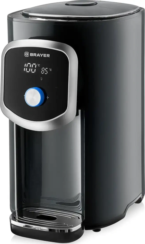 Термопот Brayer BR1094 изготовлен в Китае и имеет мощность 1200 Вт. Его корпус выполнен из прочного пластика, а внутренняя колба — из нержавеющей стали, что обеспечивает долговечность и безопасность. Объем устройства составляет 5 литров, что подходит для семьи или офиса. Двойные стенки помогают сохранять тепло и не нагреваются снаружи. Термопот оснащен дисплеем, на котором видно уровень воды, и имеет подсветку, что удобно при использовании в темноте. Он оснащен электрическим насосом для легкого розлива воды и позволяет поддерживать температуру жидкости длительное время. Также есть встроенный терморегулятор и возможность индикации текущей температуры, что помогает сохранить напитки горячими или холодными. Электронное управление делает использование простым и удобным. Этот термопот отлично подходит для тех, кто ценит комфорт и быстрый доступ к горячей воде.