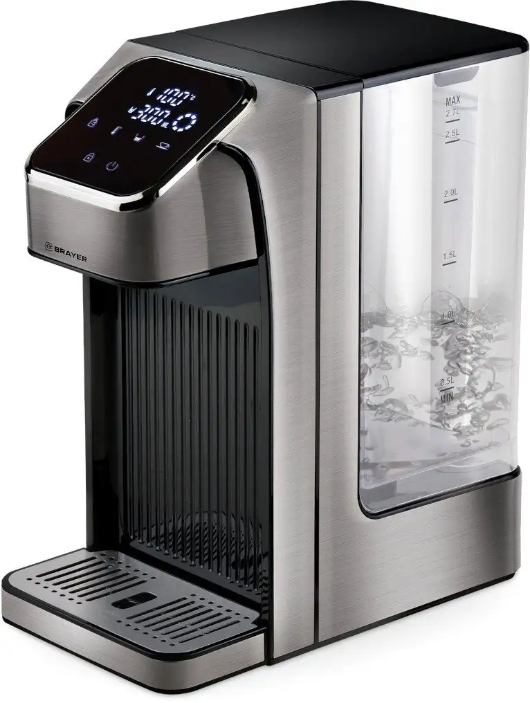 Термопот Brayer BR1099 произведен в Китае и предназначен для быстрого нагрева и поддержки горячей воды. Он выполнен из металла и пластика, а внутренняя колба сделана из нержавеющей стали. Объем устройства составляет 2,7 литра, что удобно для семейных нужд. Термопот имеет мощность 2600 Вт, что позволяет быстро закипятить воду. Есть функция терморегулятора и индикация температуры, чтобы вы всегда знали текущий уровень. Минимальный уровень воды — 0,5 литра, так что его легко контролировать. Устройство управляется сенсорной панелью, что делает его использование простым и удобным.