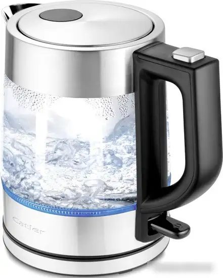 Электрический чайник Catler KE 411 выполнен из прочного металла и стекла, он удобно выглядит и легко используется. Его объем составляет 1 литр, а мощность позволяет быстро вскипятить воду — 2200 Вт. Корпус яркий и прозрачный, есть синяя подсветка уровня воды, которая показывает, сколько осталось. Чайник легко подключается благодаря вращающейся подставке и длине шнура 0.8 метра. Его корпус выполнен из нержавеющей стали, а колба — из стекла, что придает изделию современный вид и надежность. Уровень воды видно по бокам, что помогает контролировать количество воды. Такой чайник отлично подойдет для повседневного использования дома или в офисе.