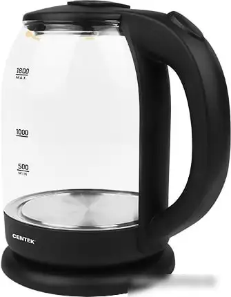 Электрический чайник CENTEK CT-0010 был выпущен в 2020 году и отлично подойдет для дома или офиса. Он сделан из металла и пластика с прозрачной стеклянной колбой, что позволяет видеть уровень воды. Чайник имеет мощность 1900 Вт и объем 1,8 литра, что помогает быстро вскипятить воду. Его корпус окрашен в черный цвет, а есть возможность вращать подставку для комфортной установки. В чайнике есть подсветка уровня воды по бокам, а также индикатор, показывающий уровень воды внутри. Он простой в использовании с механическим управлением, а также удобно за счет зафиксированной модели с закрытым нагревательным элементом. Это надежный и функциональный прибор для быстрого приготовления горячих напитков.