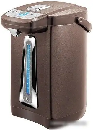 Термопот CENTEK CT-0095 подходит для хранения горячей воды благодаря вместительности 5 литров и мощности 750 Вт. Его корпус выполнен из металла и пластика, а внутреннее колбо – из нержавеющей стали, что обеспечивает долговечность. Он имеет спереди внешний уровень воды, что облегчает контроль за запасами. Устройство оснащено закрытым нагревательным элементом и электромеханическим способом розлива воды с помощью нажатого клапана. Термопот поддерживает воду горячей длительное время, что удобно для приготовления чая или кофе. Он не имеет подсветки, таймера или функции самоочистки, управляется при помощи простого электронного управления. В корпусе отсутствует подставка и дополнительные функции, что делает устройство легким и компактным. Такой термопот станет удобным помощником для дома или работы.