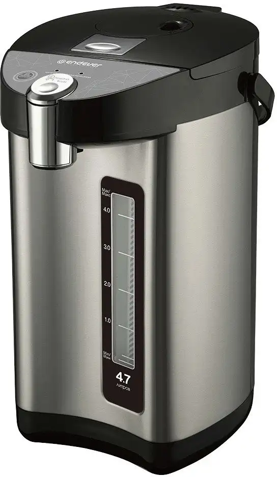 Термопот Endever Altea-2090 из Китая имеет металлический корпус и нержавеющую сталь внутри. Он позволяет быстро нагревать воду мощностью 1000 Вт и сохранять ее горячей благодаря функции поддержания температуры. Объем устройства составляет 4,7 литра, что подходит для всей семьи. Его удобно ставить на подставку с вращающейся верхней частью, а передний уровень воды легко kontrollировать. Вода заливается с помощью электрического насоса, механической помпы или нажимного клапана. Термопот отлично подходит для активных поездок, так как не имеет дорожного чехла, но его легко переносить благодаря весу 2420 г. Он быстро нагревает и долго держит воду горячей, что делает его удобным в использовании.