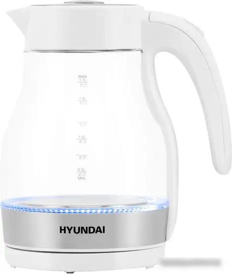 Электрический чайник Hyundai HYK-G3802 выполнен из металла, пластика и стекла, что обеспечивает прочность и стильный внешний вид. Он имеет объем 1,7 литра и мощность 2200 Вт, что позволяет быстро вскипятить воду. Корпус белого цвета украсит любую кухню. Чайник оснащён вращающейся подставкой и прозрачным уровнем воды по бокам для удобства. Внутри есть синяя подсветка, которая подсвечивает воду при нагреве. Минимальный уровень воды составляет 0,5 литра, обеспечивая безопасность в использовании. Управление механическое легко и просто, управление не требует смартфона или дополнительных настроек. Электрический чайник не обладает функциями поддержания температуры или таймера, что делает его простым и надёжным. Он идеально подходит для ежедневного использования, быстро нагревает воду и прослужит долго благодаря качественным материалам.