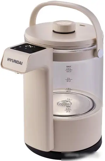 Термопот Hyundai HYK-G7700 — удобное устройство для заваривания и хранения горячей воды. Он выполнен из пластика и стекла, а его стеклянная колба обеспечивает безопасность и долговечность. Мощность термопота составляет 2200 Вт, что позволяет быстро нагревать воду, а объем 2,5 литра подходит для семейных нужд. Корпус окрашен в бежевый цвет, он гармонично впишется в любой интерьер. Термопот имеет минимальный уровень воды 0,5 литра и вращающуюся подставку для удобства использования. Современный электронный контроль позволяет точно регулировать температуру от 40 до 100 градусов с шагом в 5 градусов, что удобно для разных напитков. Специальная индикация показывает текущий уровень температуры. Встроенный электромеханизм обеспечивает автоматический нагрев и поддержание горячей воды. Он отлично подойдет для тех, кто ценит быстрый доступ к горячей воде без лишних усилий. Благодаря заварному механизму, вода остается горячей дольше и не пересыхает.