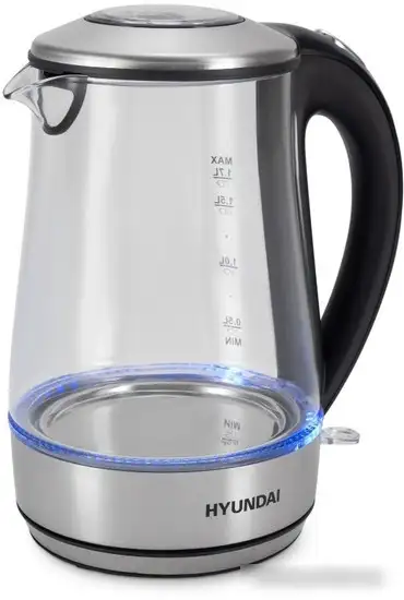Электрический чайник Hyundai HYK-G8406 быстро нагревает воду благодаря мощности 2200 Вт и вместимости 1.7 литра. Он имеет корпус из нержавеющей стали и прозрачную стеклянную колбу, которая позволяет контролировать уровень воды. Минимальный уровень воды — 0.5 литра, что удобно для различных объемов. Чайник оснащён вращающейся подставкой для лёгкого установки и считывает уровень воды по бокам. Внутри есть синяя подсветка воды, которая создаёт приятный визуальный эффект. За безопасность отвечает закрытый нагревательный элемент, уменьшающий риск ожогов и загрязнений. На корпусе есть внешняя индикация уровня воды для быстрого контроля. Управление осуществляется механически, без дополнительных настроек и функций. Этот чайник подходит для быстрого и удобного кипячения воды дома или в офисе.