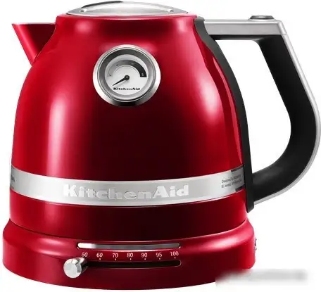 Чайник KitchenAid Artisan 5KEK1522ECA выполнен из прочного металла с пластиковой колбо-й. Он предназначен для быстрого кипячения воды мощностью 2400 Вт, объёмом 1,5 литра. Чайник имеет яркий красный цвет, который легко вписывается в любую кухню. Минимальный уровень воды составляет 0,25 литра, что помогает избежать пересыхания. Подставка с поворотным механизмом упрощает размещение устройства. Встроенная прозрачная вставка возле ручки позволяет контролировать уровень воды. Чайник оснащён подсветкой воды, что делает его использование удобным и придает современный вид. Терморегулятор с диапазоном от 50 до 100°С помогает заваривать напитки по-разному. Управление механическое обеспечивает надежность и простоту использования. Внутренняя конструкция не включает функции поддержки температуры или длительного кипячения, что делает устройство простым и функциональным.