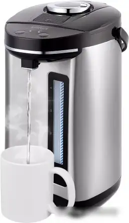 Термопот Kitfort KT-2512 легко держит воду горячей благодаря мощностии 900 Вт и большому объему 4 литра. Его корпус выполнен из металла и пластика, а колба — из нержавеющей стали, что обеспечивает долговечность и безопасность. Вы можете контролировать уровень воды по внешнему отображению спереди, а также легко наливать воду с помощью электрического насоса, механической помпы или нажимного клапана. Устройство поддерживает заданную температуру в диапазоне от 75°C до 100°C и автоматически сохраняет ее продолжительное время. Оно управляется электронным путем, что упрощает использование. Термопот работает с минимальным уровнем воды 1 литр и не имеет подсветки или функции заваривания. Благодаря компактным размерам и весу 2,3 кг, его удобно размещать в любом месте кухни. Для удобства есть 1-метровый шнур и возможность контролировать температуру без необходимости включать устройство вручную. Этот термопот идеально подходит для быстрого получения горячей воды дома или в офисе.