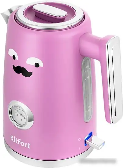 Электрочайник Kitfort KT-6144-1 — это стильный и удобный прибор, сделанный из металлического корпуса и нержавеющей стали внутри. Он обладает мощностью 2200 Вт, что позволяет быстро вскипятить воду объемом 1,7 литра. Корпус выполнен в розовом и серебристом цвете, а на ручке есть внешний уровень воды для удобства. Чайник легко вращается на подставке на 360°, что делает его использование комфортным. Он оснащен индикатором уровня воды и автоматическим отключением при закипании.