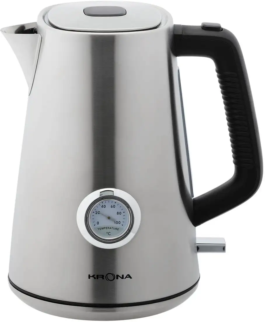 Электрический чайник Krona Stahl Inox КА-00008503 сделан из нержавеющей стали и пластика, что обеспечивает его надежность и современный внешний вид. Он имеет мощность 2200 Вт, благодаря чему быстро вскипает воду, а объем 1.7 литра подходит для семьи или офиса. В чайнике есть индикатор уровня воды возле ручки и внешний уровень воды, что удобно для контроля за количеством воды. Его конструкция позволяет вращать подставку, а длина сетевого шнура составляет 0.7 метров. Корпус в черном и нержавеющем цветах хорошо сочетается с интерьером кухни. Этот чайник подходит для быстрого кипячения воды и легко управляется механически. Он не поддерживает тепло- и температурный режим, а также не имеет функций для заваривания напитков или подключения к смартфону.