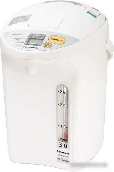 Чайник Panasonic NC-DG3000WTS выполнен из прочного пластика и нержавеющей стали, что делает его долговечным и безопасным. Он способен закипать воду мощностью 700 Вт и имеет объем 3 литра, что подходит для большой семьи или офиса. Чайник оснащен функцией поддержания температуры и длительного кипячения, а также электронным управлением и таймером на 10 часов. Благодаря вращающейся подставке его удобно использовать, а прозрачная вставка позволяет легко следить за уровнем воды. Встроенный насос и механическая помпа обеспечивают удобный розлив воды. Устройство отличается компактными размерами и весом 2,5 кг. У него есть уникальная возможность выбрать температуру нагрева — 70, 80, 90 или 98 градусов, что позволяет подогревать воду или сохранять ее оптимальной для различных напитков.