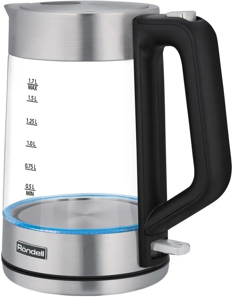 Электрический чайник Rondell RDE-1008 выполнен из металла, стекла и пластика, что придает ему современный и стильный внешний вид. Он имеет объем 1.7 литра и мощность 2200 Вт, что позволяет быстро вскипятить воду. Корпус прозрачен, с синей подсветкой уровня воды по бокам, что делает использование удобным и безопасным. В чайнике есть подставка с возможностью вращения, а наличие внешнего уровня воды помогает контролировать количество жидкости. Управление осуществляется механически, что делает его простым в использовании. Минимальный уровень воды - 0.5 литра, что подходит для разных потребностей. Размеры позволяют легко разместить его на кухне или в офисе. Вес устройства составляет 1550 граммов, его удобно переносить и хранить.