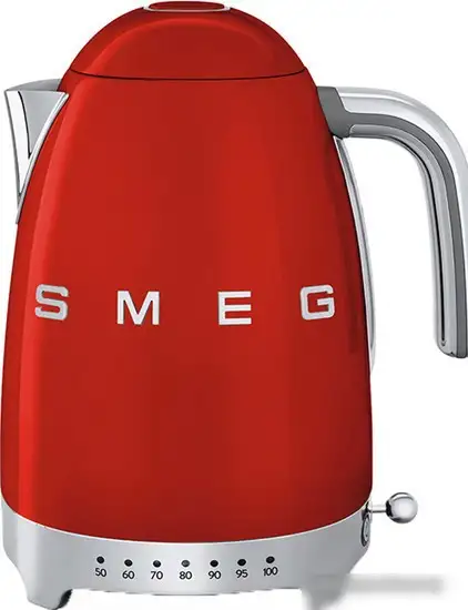 Этот красный чайник от Smeg выполнен из нержавеющей стали и обладает объемом 1,7 литра. Мощность устройства составляет 2400 Вт, что позволяет быстро закипать воде. Чайник легко управляется благодаря электронному управлению и терморегулятору с индикатором температуры. Он поддерживает температуру воды, что удобно для различных напитков. Благодаря вращающейся на 360 градусов подставке его удобно ставить и снимать. Максимальный уровень воды — 0,5 литров, что позволяет контролировать процесс кипячения. Чайник не имеет подсветки и встроенной инфракрасной индикации. Его компактные размеры позволяют разместить на любой кухне, а вес всего 1800 г делает его легким в использовании. Также он обеспечивает долгосрочное кипячение и поддержку тепла, что удобно при подготовке напитков.
