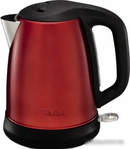 Чайник Tefal KI2705 — это удобный электрический чайник с пластиковым и металлическим корпусом красного цвета. Его объем составляет 1,7 литра, а мощность — 2 400 Вт, что позволяет быстро вскипятить воду. Корпус имеет прозрачную вставку возле ручки и вращающуюся подставку для удобства использования. Минимальный уровень воды — 0,8 литра, что удобно при кипячении меньших объёмов. Управление механическое, без дополнительных функций, таких как подсветка или регулировка температуры. Этот чайник хорошо подходит для ежедневного использования благодаря простоте и надежности.