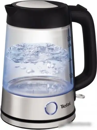 Чайник Tefal KI750D30 имеет стеклянный корпус и объем 1,7 литра. Его мощность составляет 2 400 Вт, что позволяет быстро закипать воде. Устройство оснащено вращающейся на 360 градусов подставкой и боковой внешней индикацией уровня воды, которая помогает лучше контролировать количество воды. Благодаря прозрачному корпусу можно легко видеть уровень воды внутри. В чайнике есть подсветка воды, которая делает процесс кипячения более удобным и красивым. Этот чайник не имеет дополнительных функций, таких как регулировка температуры или поддержание тепла, он предназначен исключительно для быстрого кипячения воды. Он легкий и удобный в использовании благодаря механическому управлению, что делает его хорошим вариантом для ежедневного использования.