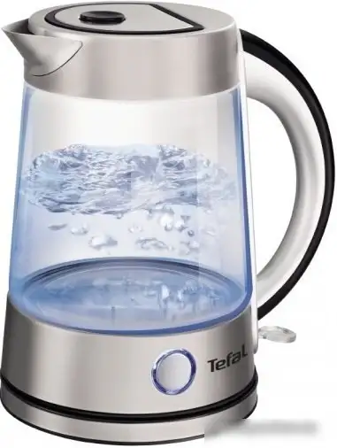 Чайник Tefal KI760D30 сделан из стекла и нержавеющей стали, что придает ему современный и прочный вид. Он имеет мощность 2 400 Вт, благодаря чему быстро нагревается, и объем 1.7 литра, чтобы заварить достаточно чая или приготовить горячие напитки. У этого чайника есть подсветка воды и внешний уровень воды возле ручки, что облегчает использование. Конструкция с вращающейся на 360° подставкой удобна для любых условий эксплуатации. Минимальный уровень воды — 0.5 литра, что позволяет контролировать расход. Управление механическое, простой и понятный способ включения. Этот чайник идеально подойдет для домашнего использования благодаря своей надежности и простоте.»