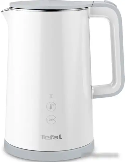 Тефаль KO693110 — это надежный электрический чайник на 1,5 литра с корпусом из металла и пластика. Он мощностью 1500 Вт быстро закипает воду и имеет удобную вращающуюся подставку, что позволяет легко его поставить и снять. Чайник поддерживает выбранную температуру до 30 минут, что удобно для подогрева напитков. Он оснащен терморегулятором с пятью уровнями: 40°C, 70°C, 80°C, 90°C и 100°C, что помогает максимально точно выбрать нужную температуру для разных напитков. Корпус имеет стильный белый цвет, а его размеры позволяют хранить его даже при ограниченном пространстве. Основные функции управляются механически, что обеспечивает надежную работу и простоту использования.
