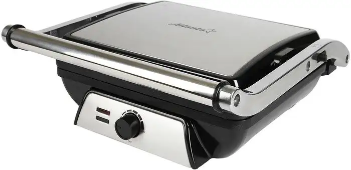 Электрогриль Atlanta ATH-1111 мощностью 2000 Вт подходит для приготовления разнообразных блюд и работает на любой кухне. Его конструкция двусторонняя, что позволяет готовить быстрее и равномерно. Рабочая поверхность выполнена из рифлёной стали, которая легко очищается и предотвращает прилипание еды. Гриль размещается прямо на столе, что удобно для совместных обедов и ужинов. Есть съемный поддон для жира, благодаря которому блюда остаются менее жирными и проще чистятся. Регулировка температуры помогает выбрать оптимальный режим для разных продуктов. Цвет в нержавеющей стали и черный делает его стильным дополнением любой кухни.