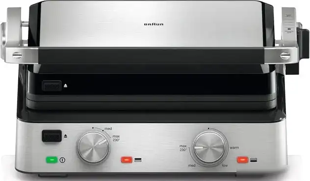 Электрогриль Braun MultiGrill 7 CG7010 — это универсальный прибор для приготовления пищи. Он работает мощностью 2000 Вт и имеет двухсторонний дизайн, что позволяет быстро и равномерно готовить разные блюда. Поверхности сделаны из алюминия и включают гладкую и рифленую плиты для разнообразных вариантов приготовления. Есть съемные панели и поддон для жира, что облегчает уборку и поддержание чистоты. Вы можете регулировать температуру, чтобы готовить продукты точно по вашему вкусу. Этот гриль легко разместить на столе благодаря небольшим размерам, а его вес составляет всего 5,3 кг.