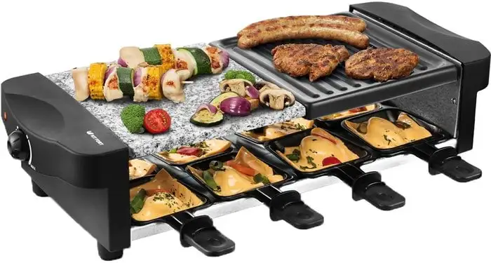 | Комплектация | Раклетница - 1 штКаменная плита - 1 штПанель с антипригарным покрытием - 1 штПорционные сковородки с антипригарным покрытием — 8 шт.Руководство по эксплуатации - 1 штГарантийный талон - 1 шт |