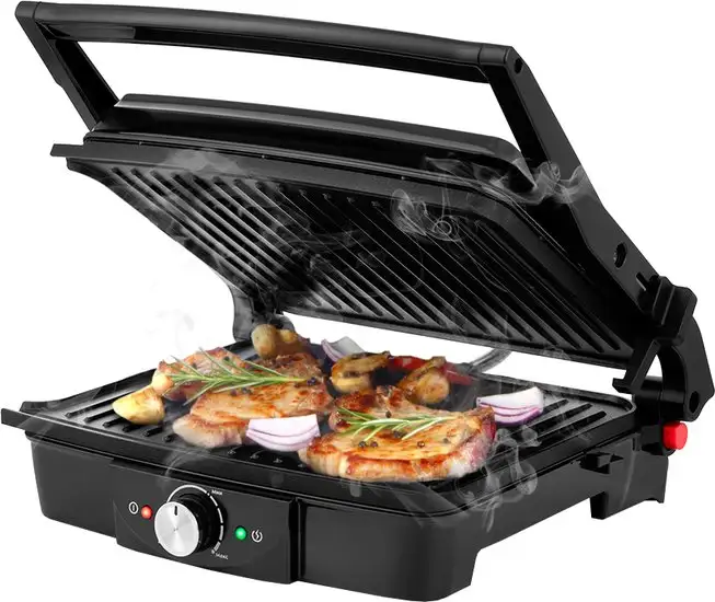 2000 Вт, универсальный, двухсторонний (гриль-пресс), габариты 332x319 мм, рабочая поверхность 279x229 мм