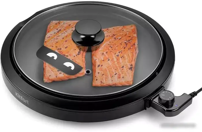Электросковорода Kitfort KT-1680 — это удобная кухня помощница, которая подходит для приготовления различных блюд. Устройство имеет мощность 1750 Вт и металлическую рабочую поверхность из алюминия, которая быстро нагревается и равномерно распределяет тепло. Скоровода выполнена в черном цвете и легко размещается на столе благодаря компактным размерам — шириной около 37 см и высотой 13 см. Рабочая поверхность гладкая и съемная, что облегчает очистку после готовки. Можно регулировать температуру в 5 ступенях от 120°C до 240°C в зависимости от рецепта. Эта модель не имеет автоматических программ или таймера, что требует внимания во время приготовления. Это простая и надежная скоровода, которая поможет готовить разнообразные блюда легко и быстро.