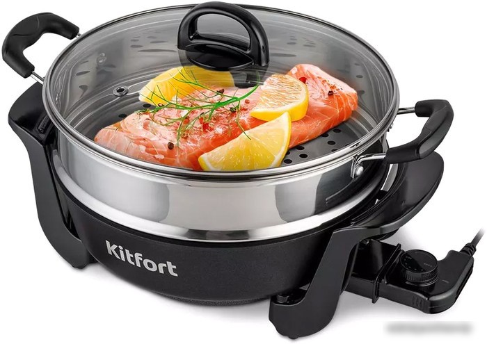 Электросковорода Kitfort KT-4055 предназначена для удобной готовки прямо на столе. Ее рабочая поверхность выполнена из алюминия и легко моется благодаря съемной части. Модель имеет мощность 1500 Вт, что обеспечивает быстрое и равномерное приготовление. Вы можете регулировать температуру по 5 уровням, чтобы идеально подобрать режим для разных блюд. Размеры сковороды позволяют готовить себе или компании. Контактный односторонний тип конструкции обеспечивает эффективную работу. Цвет устройства — черный, стильный и легко сочетаемый с кухней. Вес 3 кг делает его уютным и не слишком тяжелым для перемещения. Простая ручная настройка позволяет выбрать нужный режим без сложных программ. Это устройство отлично подойдет для приготовления разнообразных блюд прямо на столе.