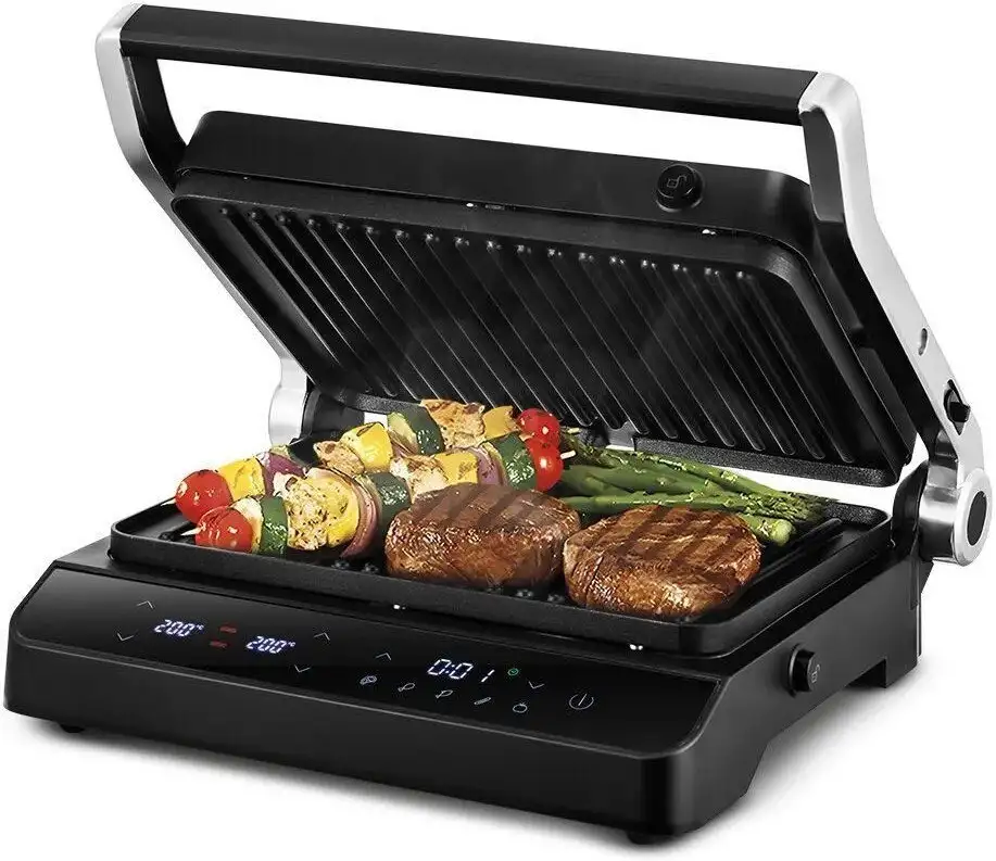 2000 Вт, универсальный, двухсторонний (гриль-пресс), габариты 357x320 мм, рабочая поверхность 296x218 мм
