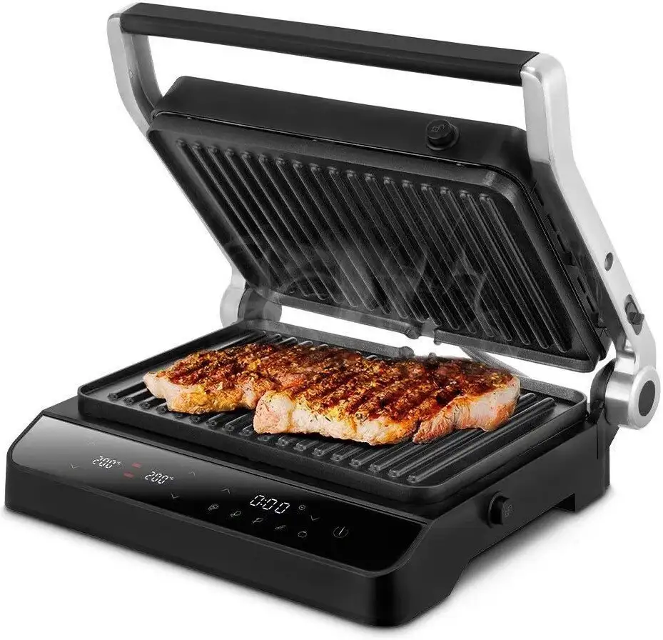 Электрогриль Kitfort KT-4617 отлично подходит для приготовления разнообразных блюд. Благодаря мощностью 2000 Вт он быстро нагревается и равномерно распределяет тепло. Устройство оснащено двухсторонним гриль-прессом с рифлёной поверхностью, что позволяет готовить мясо, овощи и другие продукты с характерными полосками. Рабочая поверхность имеет размеры 296×218 мм, чего хватает для приготовления нескольких порций за раз. Съемные панели и поддон для жира облегчают очистку устройства. Гриль поддерживает регулировку температуры, а также автоматические программы — их пять — для упрощения процесса готовки. Таймер помогает точно контролировать время приготовления. Благодаря компактным размерам (периметром 357×320 мм и высотой 135 мм) его удобно хранить дома. Устройство управляется вручную и не требует подключения к смартфону.