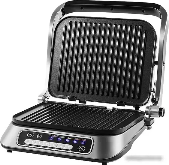 Электрогриль RED Solution SteakPro RGM-M805 - это удобный настольный гриль с мощностью 2100 Вт и двухсторонней конструкцией. Он выполнен из нержавеющей стали и имеет черный цвет, что делает его стильным и прочным. Рабочая поверхность с рифлёной плитой позволяет готовить мясо, овощи и другие блюда равномерно и с характерными полосками. Модель оснащена съемным поддоном для жира, который легко очищается, и автоматическими программами для упрощения процесса приготовления. Можно регулировать температуру до 240°С, чтобы добиться нужной степени готовности. В комплект входит книга рецептов, которая поможет разнообразить меню. Размеры устройства позволяют разместить его на столе, а его вес — 4,5 кг.