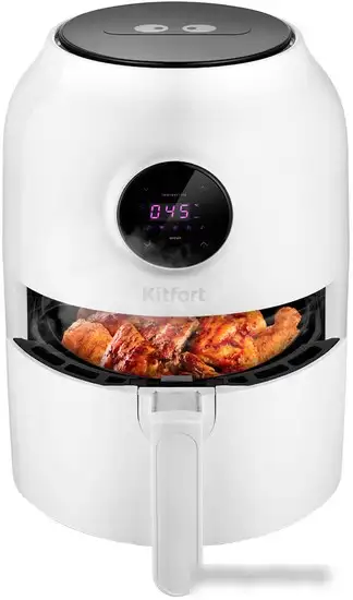 Аэрофритюрница Kitfort KT-2235 – это бытовой прибор с мощностью 1300 Вт, который помогает готовить вкусную жареную еду без масла. У неё есть сенсорное управление и таймер на 30 минут, что делает приготовление простым и удобным. Рабочий объем колбы составляет 2.6 литра, а общий объем — 3.5 литра, чтобы приготовить довольно много еды за раз. Цвет устройства — белый, оно компактное и легко впишется в любую кухню. Регулировка температуры от 80 до 200 °C позволяет готовить разные блюда.