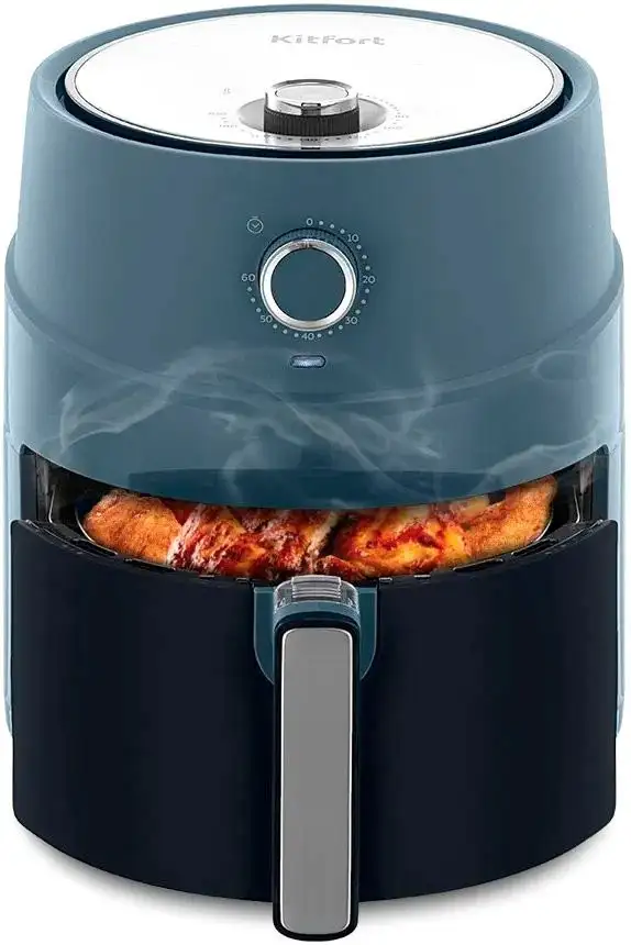 Аэрогриль Kitfort KT-8118 помогает быстро и легко готовить вкусные блюда благодаря мощности 1500 Вт. Он имеет рабочий объем 3,2 литра, что позволяет готовить достаточно еды для всей семьи. Управлять устройством просто с помощью механического таймера на 1 час и регулировки температуры от 80 до 200 °C. Аэрогриль автоматически отключается после завершения работы, обеспечивая безопасность. Конструкция выполнена в стильных цветах — синий и черный, а его размеры позволяют удобно разместить на кухне. В устройство можно вставлять продукты и контролировать процесс приготовления. Благодаря функции регулировки температуры и таймеру, вы можете выбрать оптимальные параметры для разных блюд. Он не имеет множества автоматических программ и функций самоочистки, что делает его простым в использовании и уходе. Это надежный помощник для быстрой и здоровой готовки дома.