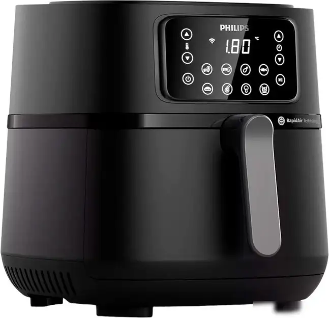 Аэрофритюрница Philips HD9285/93 — это удобная и мощная техника для приготовления вкусных блюд. Она работает на мощности 2000 Вт и имеет большой объем колбы 7.2 литра, что позволяет готовить порции сразу для всей семьи. Управляемая сенсорно и через смартфон, она легко настраивается и управляется. В фритюрнице есть таймер, автоматические программы и возможность поддерживать температуру от 40 до 200 °C, что обеспечивает качественную готовку.