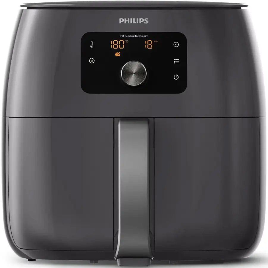 Аэрофритюрница Philips HD9765/40 выполнена в черном цвете и имеет мощность 2225 Вт. Она оснащена электронным управлением и таймером, что позволяет точно настроить время приготовления. Объем колбы составляет 7.3 литра, что подходит для приготовления больших порций еды. В устройстве есть функция поддержания температуры, которая помогает сохранять блюда горячими. Фритюрница не имеет функции отложенного старта или автоматических программ, но легко управляется с помощью кнопок. Она не интегрирована со смартфоном и не поддерживает управление через "умный дом". Размеры позволяют удобно разместить устройство на кухне. Вес — около 8 кг, что обеспечивает устойчивость и стабильность при использовании.