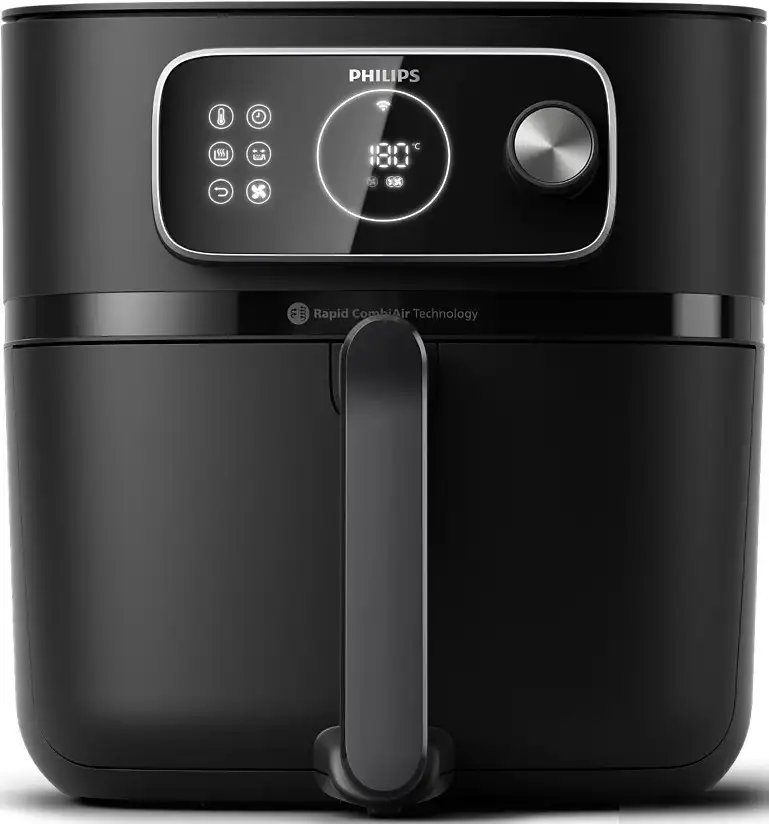 Эта аэрофритюрница Philips HD9876/90 выполнена в черном цвете и предназначена для быстрого и удобного приготовления пищи. Она оснащена мощностью 2200 Вт и объемом колбы 8,3 литра, что позволяет готовить большие порции за раз. Управление осуществляется сенсорной панелью, есть встроенный таймер и регулировка температуры от 40 до 200 °C, что помогает точно настроить процесс. Устройство поддерживает автоматические программы приготовления, что облегчает работу и обеспечивает отличный результат. Оно также сохраняет тепло после готовки и отключается автоматически по окончании работы. Также есть функция управления со смартфона, что позволяет управлять фритюрницей удаленно. Размеры прибора — примерно 33х44х36 см, вес — чуть больше 9 кг, что делает его достаточно компактным для кухни. Это устройство идеально подходит для тех, кто ценит быстрые и здоровые блюда без глубокого жарения. • Управление со смартфона — позволяет контролировать приготовление удаленно, экономя время. • Автоматические программы — упрощают процесс и гарантируют хорошее качество блюда. • Регулировка температуры — помогает выбрать оптимальный режим для разных рецептов. • Ткано поддержание температуры — сохраняет пищу горячей после завершения готовки. • Таймер — устанавливает время приготовления, избегая пересушивания. • Автоотключение — обеспечивает безопасность при использовании.