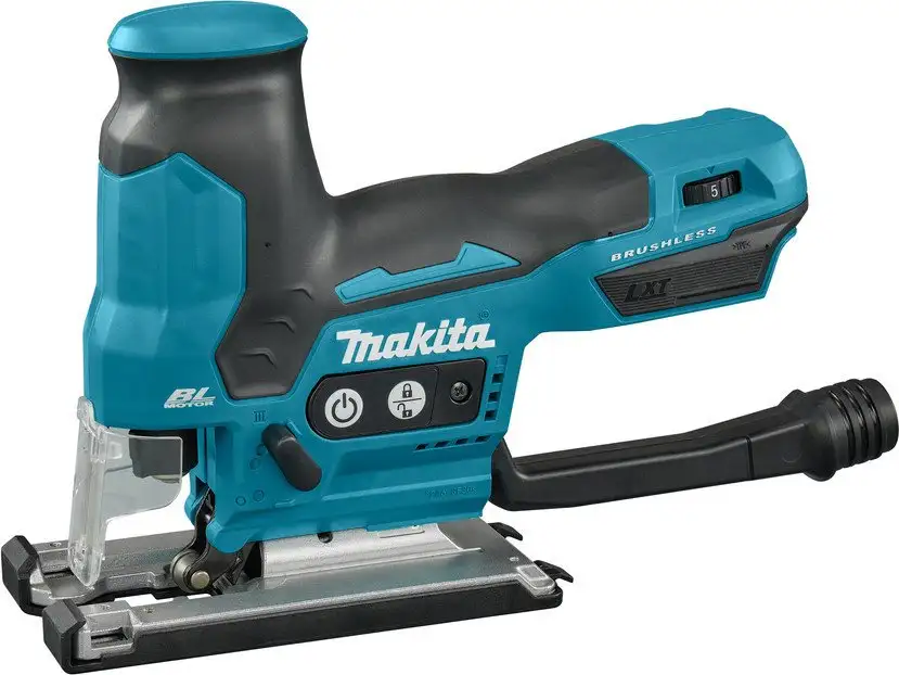 Электролобзик Makita DJV185Z (без АКБ) произведён в Китае и относится к серии Makita (зеленый). Он оснащён мощным бесщеточным двигателем, который обеспечивает долговечную работу и высокую производительность. У этого лобзика есть функция регулировки частоты ходов от 800 до 3000 раз в минуту и возможность маятникового хода, что помогает делать аккуратные и быстрые пропилы. Максимальная глубина пропила в дереве достигает 135 мм, а в металл — 10 мм. Также к удобным функциям относятся подсветка рабочей зоны, автоматический сдув опилок и подключение к пылесосу. Имеется система быстрой замены пилок и защитный щиток для повышения безопасности во время работы. Вес устройство всего 2 кг, что делает его лёгким и удобным для продолжительных работ.