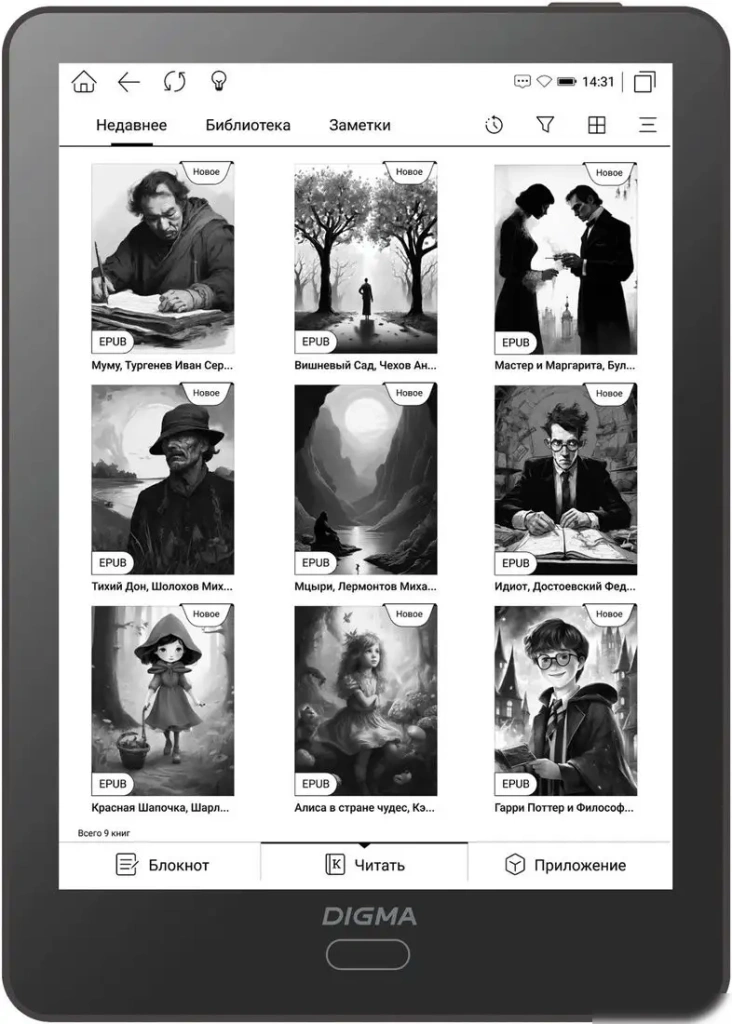 - Поддержка карт памяти microSD — расширяет пространство для хранения книг.
