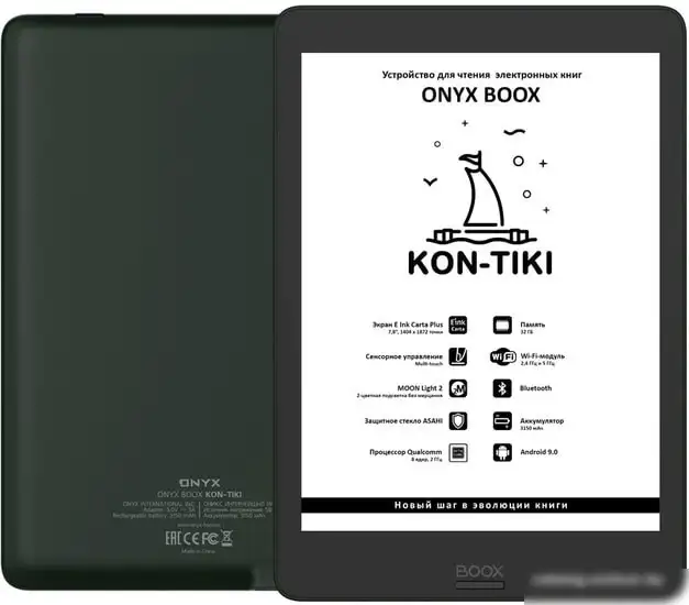 экран 7.8" E-Ink Carta Plus, монохромный, 1404 x 1872, сенсорный, с подсветкой, память 32 Гб, Wi-Fi