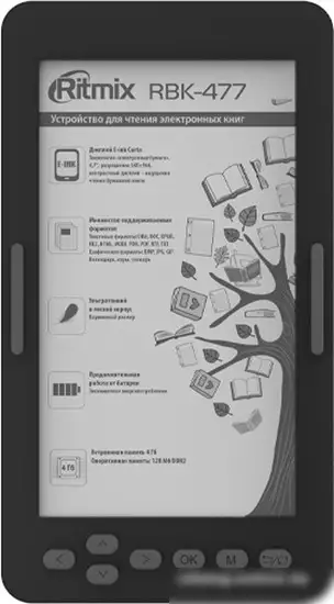 Электронная книга Ritmix RBK-477 предназначена для комфортного чтения на 4,7-дюймовом экране на базе технологии E-Ink Carta с разрешением 540 x 960 пикселей. Она не имеет подсветки и цвета, что делает чтение более близким к бумаге и уменьшает нагрузку на глаза. Устройство поддерживает различные фотоформаты, такие как JPEG, GIF и BMP, а также работает с картами памяти microSD и microSDHC до 32 ГБ, что позволяет расширить хранение книг. Встроенной камеры и возможности для аудио, видео или интернета устройство не имеет, что способствует упрощённому использованию и меньшему весу — всего 137 граммов и 8 мм толщиной. Оболочка из пластика защищает устройство, а аккумулятор емкостью 800 мА·ч обеспечивает длительную работу без подзарядки. Простая и компактная, книга легко помещается в карман или сумку для чтения в любое время. Расширенные функции отсутствуют, что делает устройство доступным и простым в использовании.