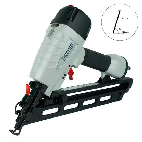 Frosp AF-6434 — это пневматический пистолет, который отлично подходит для работы с гвоздями длиной от 32 до 64 мм. Он работает при давлении от 4,8 до 7,6 бар, что обеспечивает стабильное и надежное использование. Устройство оснащено магазином на 100 гвоздей, что позволяет выполнять длительные работы без частой перезагрузки. В комплект входят фитинг, ключи и защитные очки, чтобы обеспечить безопасность и удобство использования. Размеры товара — 30,5 см в длину, 7,3 см в ширину и 25,8 см в высоту, а его вес всего 2,09 кг. Такое устройство удобно в использовании и подходит для строительных и ремонтных работ.